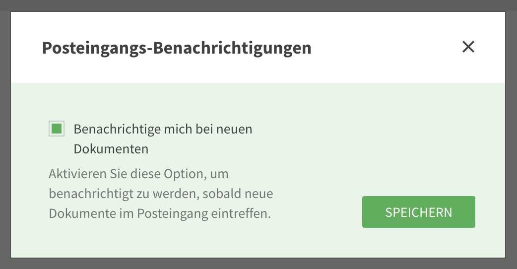 Bestätigen Sie Ihre Auswahl, indem Sie auf „Speichern“ klicken. Ab sofort erhalten Sie E-Mail-Benachrichtigungen, wenn neue Dokumente in Ihrem Posteingang eingehen.